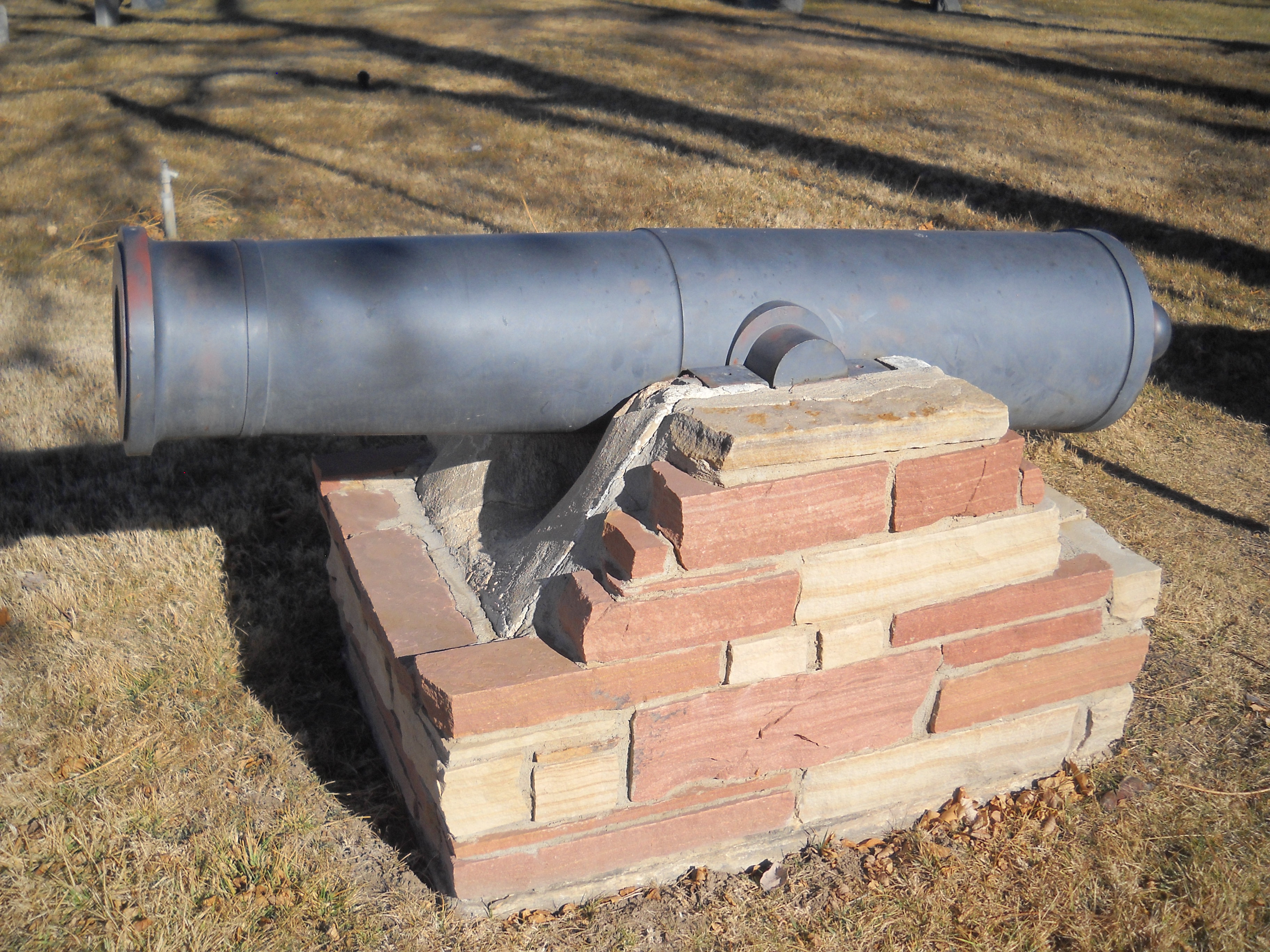 On the way out I resolved to stop – just for a minute – and take a couple pictures of the cannon. I didn’t recognize them, and thought they might make an interesting question for Craig Swain over at To The Sound of the Guns. So I parked the car, hopped out, and strolled over to the cannon with my camera. I looked the cannon over, then spied an veteran’s headstone behind them. Curious, I walked over to it. It marked the grave of a former member of the 122d Illinois Infantry. That’s odd, I thought, that regiment was never anywhere near Colorado during the war. No one in the car was honking the horn yet, so I decided to look at a few more of the headstones.